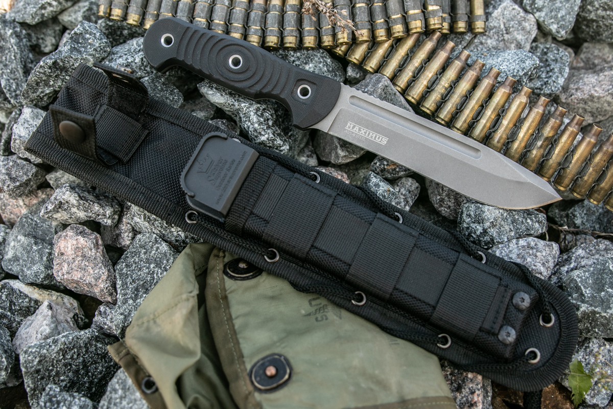 Сногсшибательно красивый широкий сатинированный клинок из великолепной ножевой стали AUS-8, эргономичная рукоять из суперпрочного G10, а также полностью MOLLE-совместимый чехол с бесконечными вариациями крепления - все это имеется у одного из самых популярных ножей новой линейки - Maximus.