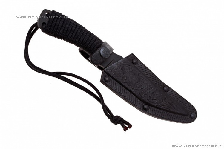 Изящный нож Пиранья в черном исполнении обладает необычной плавно изогнутой формой.