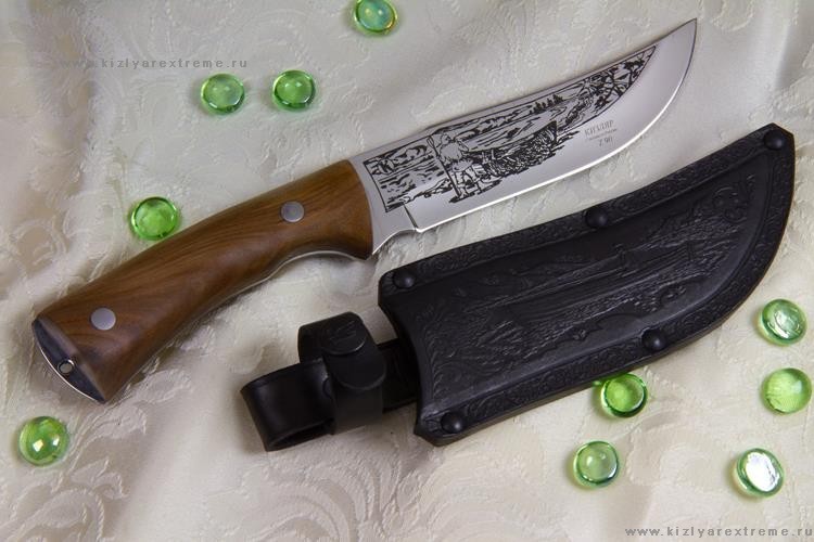 Достойное качество исполнения ножа, деревянные части ручки подогнанны безупречно. Удобно лежит в руке. Режущие качества и долговечность заточки пока не опробывал, покажет время. Добротное исполнение кабуры, кожа.