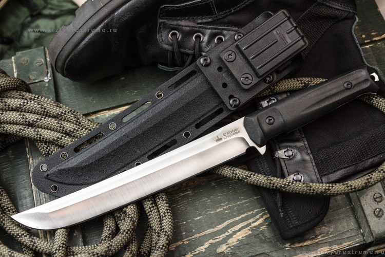 Функционально он объединяет в себе лагерный нож, мачете и японский вакидзаси.