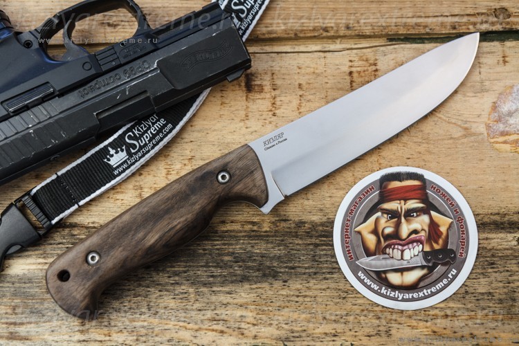 Брал этот нож "вслепую" вместе со Стерхом-2, Santi и Vega, до этого в руках не держал и на витринах магазинов не видел. Остался очень доволен, т.к. за небольшие деньги получил абсолютно функциональный и удобный нож. Собран аккуратно, без всяких зазоров на рукояти, рукоять очень удобная, сидит в руке крепко; заточен отлично - волосы на руке бреет "влёт"; ножны из толстой кожи, швы все ровные, только подвес на ремень попроще, чем у ножен Стерха - просто в кожаном хлястике сделаны прорезы под ремень. Мой экземпляр немного отличается от того, что на фото, причем я думаю в лучшую сторону: пятка клинка ровная - работать удобнее, т.к. режущая кромка целиком участвует в резе и отверстие под темляк выполнено в нижней части рукояти (там где клювик), темляк (если он будет) не упирается в ладонь. Пока на природе нож не был, вовсю использую на кухне и первое впечатление - нож ПРЕВОСХОДНЫЙ РЕЗАК, да и в лесу он справится со всеми задачами, для которых предназначен нож. Слоган "нож в спину кризиса" целиком и полностью описывает его характер: "У меня клинок не из порошковой стали, на мне нет серебра и золота, микарты и G-10 и ножны не из кайдекса, но в работе не уступлю никому!!!"