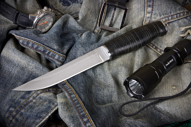 У-4 из шведской стали высокого качества Sandvik 12с27 и рукоятью из наборной кожи.
