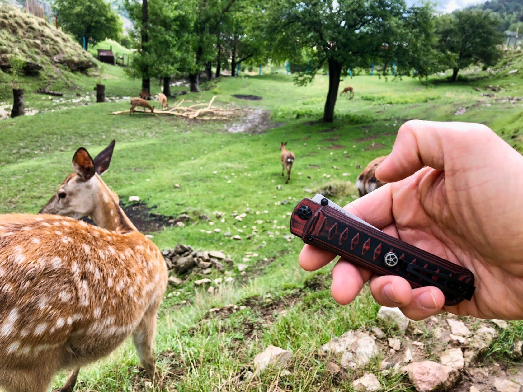 Широкие прямые спуски, просто созданы для отличного контролируемого реза. Красивая 3D фактура накладок из G10 делает рукоять очень ухватистой. Лайнерный замок прост и надежен, как и осевой блок с кассетными подшипниками. Работа механики ножа лаконичная и четкая. Завершает образ утонченного востока цветок сакуры на клипсе. И кто скажет после этого, что красота не может быть практичной!